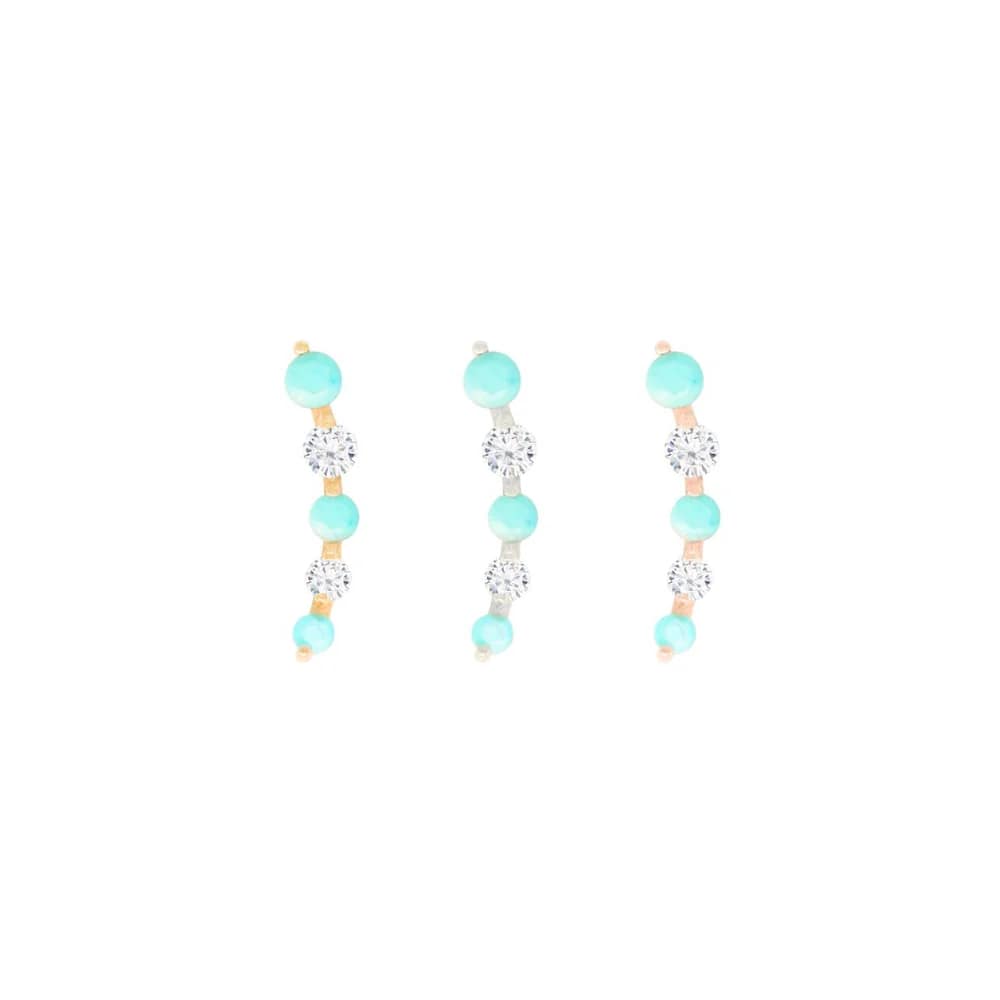 - Gemstone: (1) 1.5mm, (1) 1.3mm, and (1) 1.1mm cabochon American Turquoise, with (1) 1.4mm and (1) 1.2mm round faceted CZs