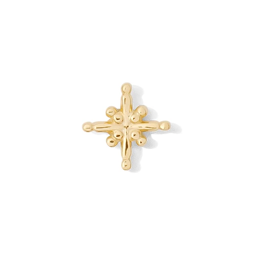 Made by Tawapa, this delicate end is 14k gold. Measuring to 5m overall. This threadless top fits any universal threadless labrets, barbells, and shafts. Labrets sold separately in the Barbells/Labrets/Curves category.