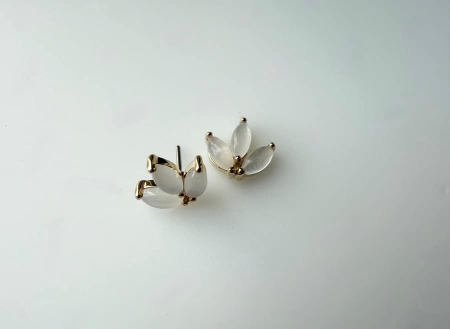 This beautiful threadless end is 14k yellow gold with a trio of 5x2mm moonstones. Overall the piece is about 7mm. This threadless top fits any universal threadless labrets, barbells, and shafts. Labrets sold separately in the Barbells/Labrets/Curves category.