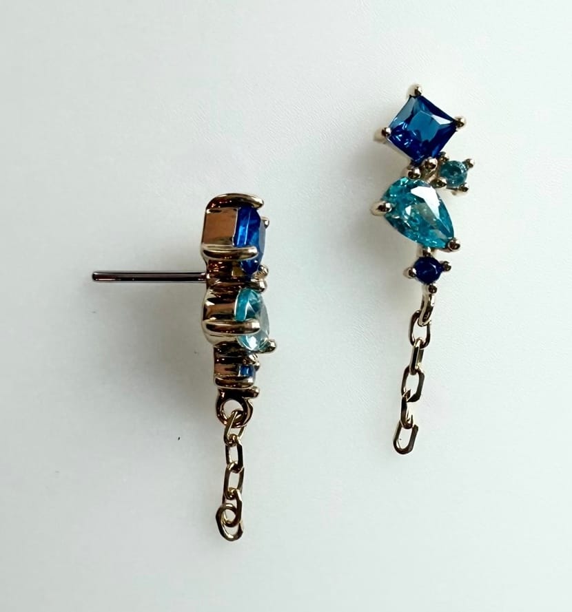 This 14k yellow gold design is that pop of color and movement you need! Featuring a variety of cubic zirconias, this piece measures to 14x4mm including the chain. This threadless top fits any universal threadless labrets, barbells, and shafts. Labrets sold separately in the Barbells/Labrets/Curves category.